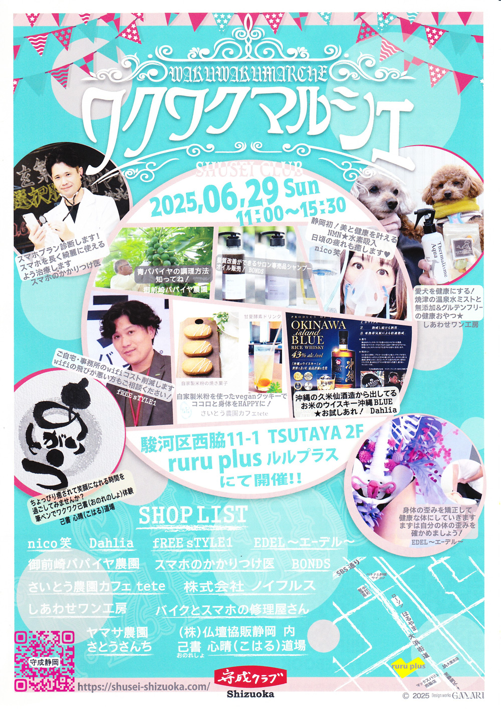 2025年6月29日(日)、静岡市駿河区西脇にあるTSUTAYA 2F「ruru plus(ルルプラス)」にて、「ワクワクマルシェ」が開催されます!