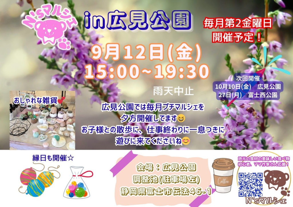 のんびりと夕方から楽しめる「N’sマルシェ in 広見公園」が、9月12日(金)の15:00~19:30に開催されます!