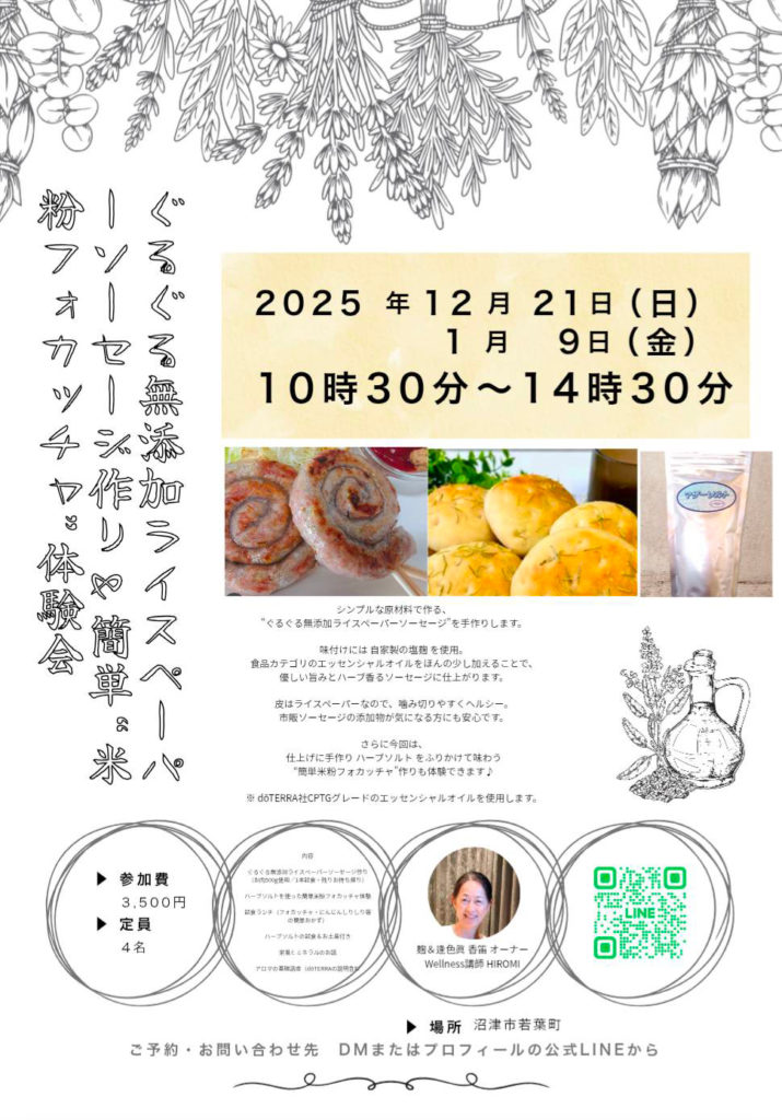 「ぐるぐる無添加ライスペーパーソーセージ作り&簡単米粉フォカッチャ体験」。